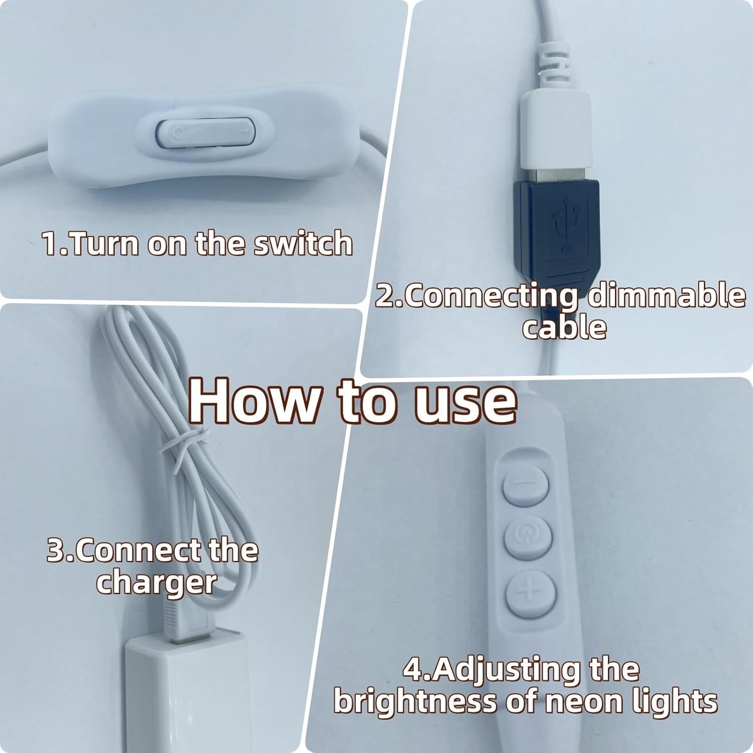 【Easy to Use】Turn on the neon sign switch, click "+" to increase brightness, and click "-" to decrease brightness.