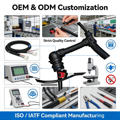 Support for OEM and ODM customization, including wire length, connector types, protective sleeves, and labeling.